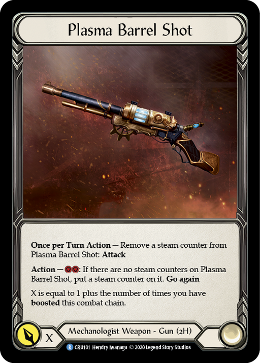 Crucible of WarLow stock**Once per Turn Action**: Remove a steam counter from Plasma Barrel Shot: **Attack** **Action** - [2 Resource]: If there are no steam counters on ...