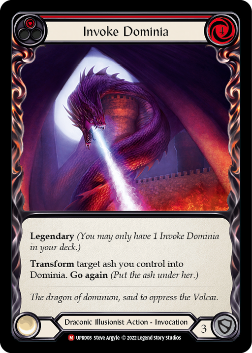 UprisingOut of stock**Legendary** *(You may only have 1 Invoke Dominia in your deck.)* **Transform** target ash you control into Dominia. *(Put the ash under her.)* ...