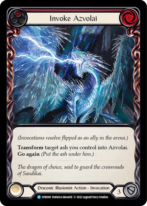 UprisingOut of stock*(Invocations resolve flipped as an ally in the arena.)* **Transform** target ash you control into Azvolai. *(Put the ash under him.)* **Go again**