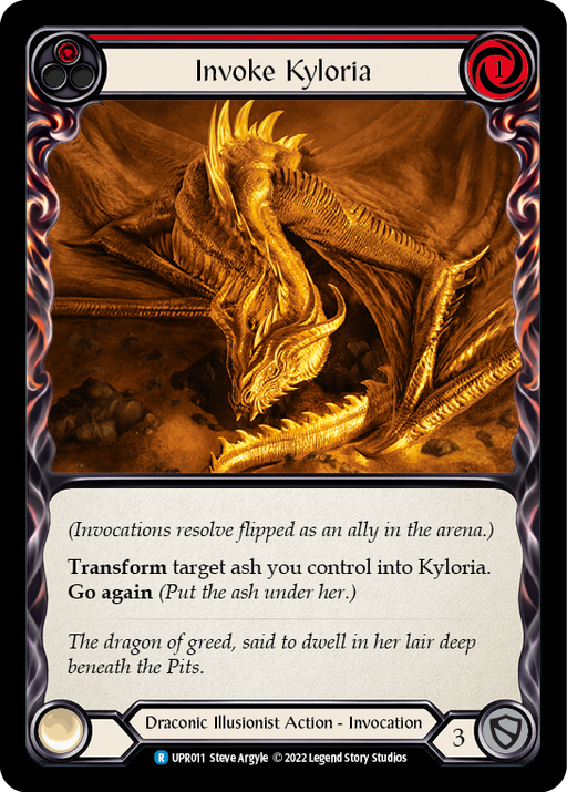 UprisingOut of stock*(Invocations resolve flipped as an ally in the arena.)* **Transform** target ash you control into Kyloria. *(Put the ash under her.)* **Go again**