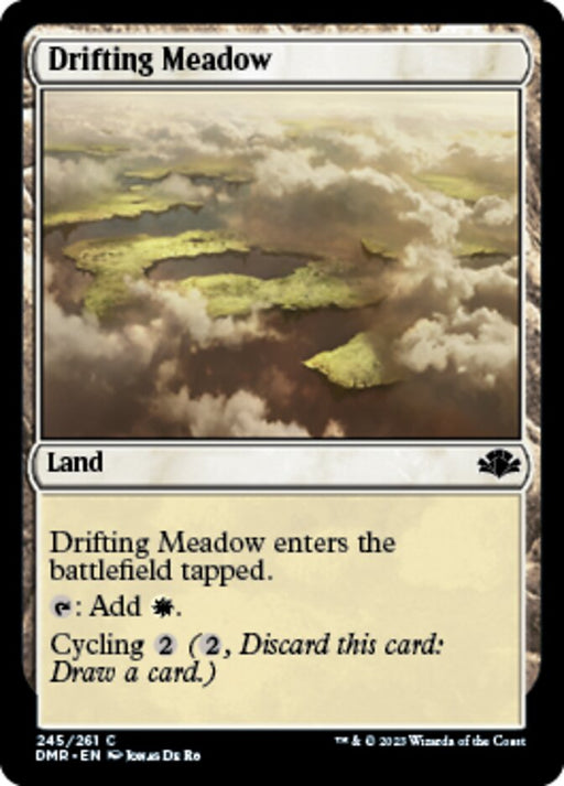 Dominaria RemasteredLow stockDrifting Meadow enters the battlefield tapped. {T}: Add {W}. Cycling {2} ({2}, Discard this card: Draw a card.)