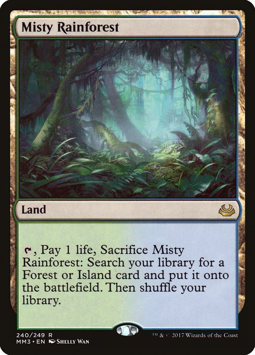 Modern Masters 2017Out of stock{T}, Pay 1 life, Sacrifice Misty Rainforest: Search your library for a Forest or Island card, put it onto the battlefield, then shuffle your library.