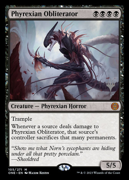 Phyrexia: All Will Be One PromosOut of stockTrample Whenever a source deals damage to Phyrexian Obliterator, that source's controller sacrifices that many permanents.