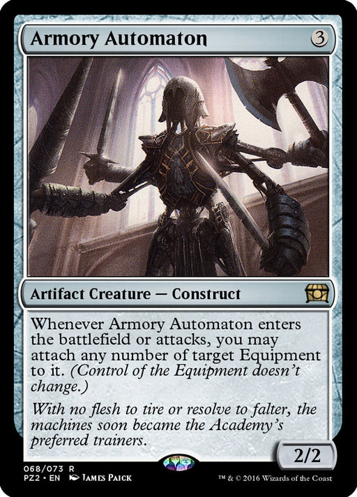 Treasure ChestOut of stockWhenever Armory Automaton enters the battlefield or attacks, you may attach any number of target Equipment to it. (Control of the Equipment doesn't...