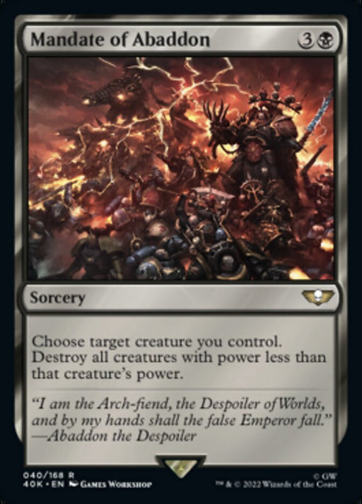 Warhammer 40000 CommanderOut of stockChoose target creature you control. Destroy all creatures with power less than that creature's power.