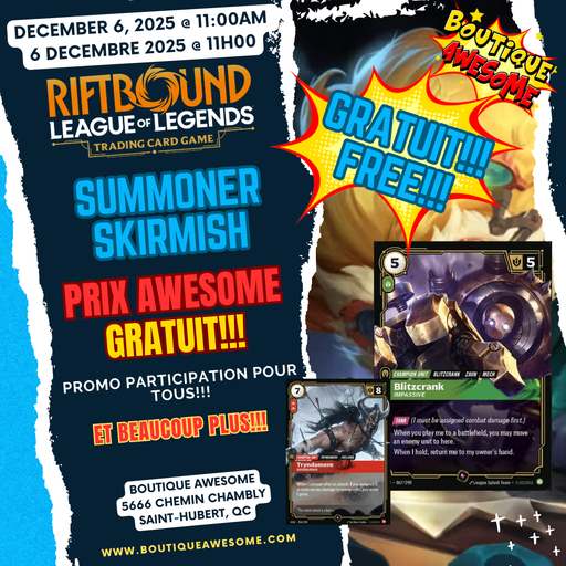 Riot GamesLow stockGet ready for the Riftbound Summoner Skirmish at Boutique Awesome – it’s almost here! 🎉Join us for an AWESOME Core Constructed tournament with amaz...