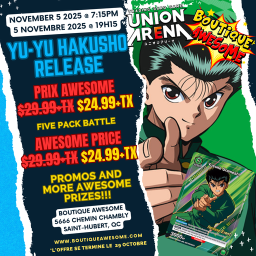 BandaiIn stock🔥 YU YU HAKUSHO Enters UNION ARENA CARD GAME! 🔥 Join the First Prerelease Event at Boutique Awesome! The spirit detectives are here! The legendary ...