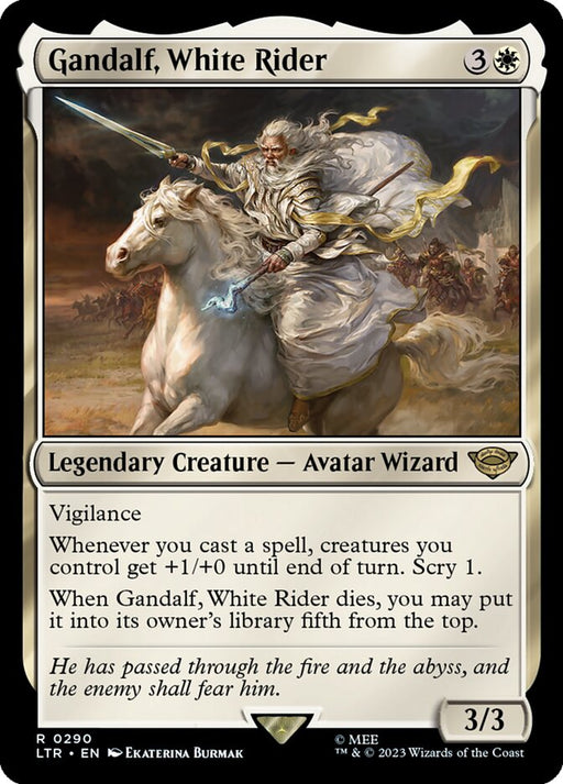 The Lord of the Rings: Tales of Middle-earthOut of stockVigilance Whenever you cast a spell, creatures you control get +1/+0 until end of turn. Scry 1. When Gandalf, White Rider dies, you may put it into...