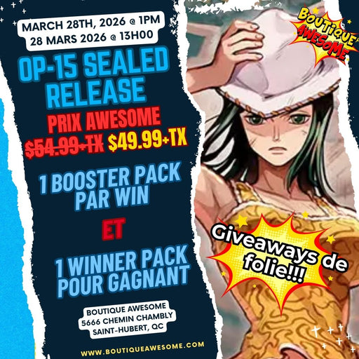 BA EventsEn stockPlayers will build their decks from 6 OP-15 packsYou may bring your own leader (including those from previous sets) to use in the event.Please brin...