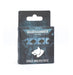 This is a set of 16 six-sided dice with squared edges for use in games of Warhammer 40,000, themed around the Space Wolves. They are cast in pearlised light blue acrylic plastic with gold ink markings, and measure 16mm along each edge. The 1-5 facings are traditionally pipped and each '6' face is decorated with the savage icon of the Space Wolves.