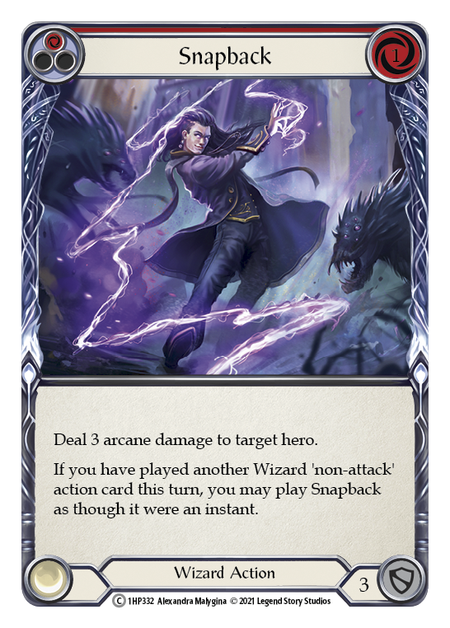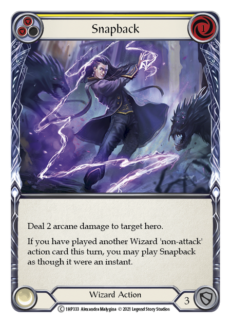 History Pack 1Stock basDeal 3 arcane damage to target hero. If you have played another Wizard 'non-attack' action card this turn, you may play Snapback as though it were...