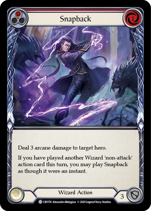 Crucible of WarRupture de stockDeal 3 arcane damage to target hero. If you have played another Wizard 'non-attack' action card this turn, you may play Snapback as though it were...
