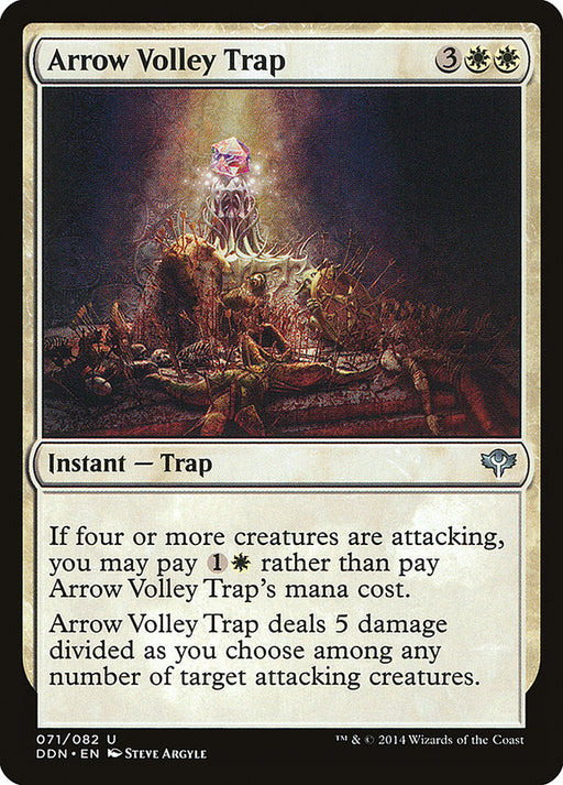 Duel Decks: Speed vs. CunningRupture de stockIf four or more creatures are attacking, you may pay {1}{W} rather than pay this spell's mana cost. Arrow Volley Trap deals 5 damage divided as you...