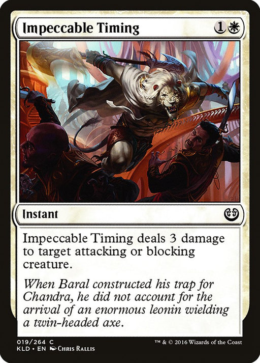 KaladeshStock basImpeccable Timing deals 3 damage to target attacking or blocking creature.