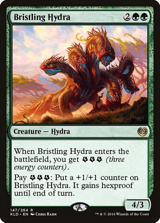 KaladeshEn stockWhen Bristling Hydra enters the battlefield, you get {E}{E}{E} (three energy counters). Pay {E}{E}{E}: Put a +1/+1 counter on Bristling Hydra. It g...