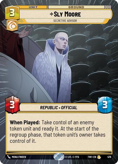 Twilight of the RepublicEn stockWhen Played: Take contol of an enemy token unit and ready it. At the start of the regroup phase, that token unit's owner takes control of it.
