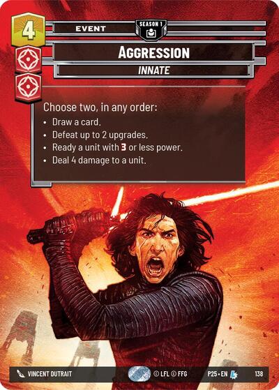 Sector and Regional Promos: Season 1Rupture de stockChoose two, in any order:Draw a card.Defeat up to 2 upgrades.Ready a unit with 3 or less power.Deal 4 damage to a unit.