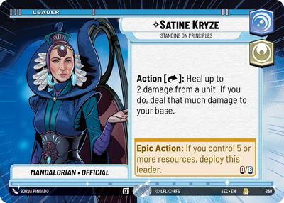 Secrets of PowerEn stockAction [Exhaust]: Heal up to 2 damage from a unit. If you do, deal that much damage to your base. [Deployed Leader Unit] Restore 4