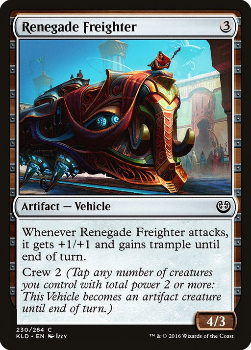 KaladeshEn stockWhenever Renegade Freighter attacks, it gets +1/+1 and gains trample until end of turn. Crew 2 (Tap any number of creatures you control with total ...