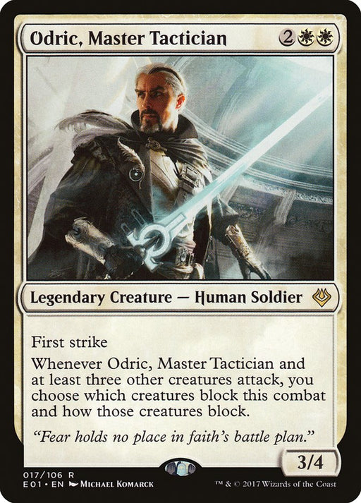 Archenemy: Nicol BolasStock basFirst strike (This creature deals combat damage before creatures without first strike.) Whenever Odric, Master Tactician and at least three other c...