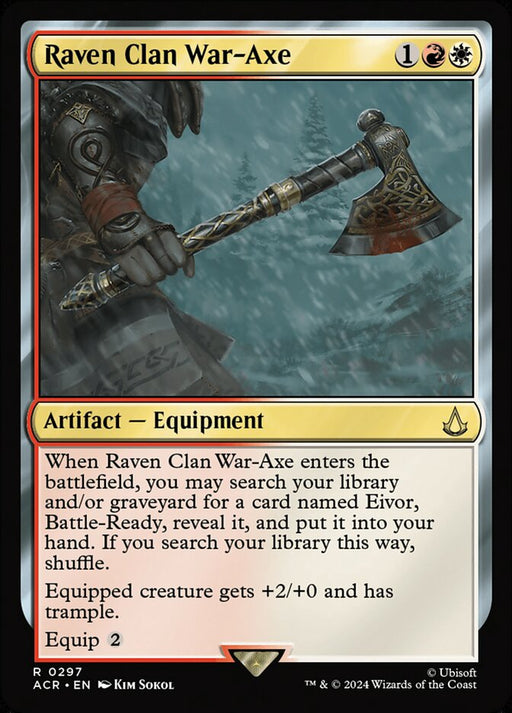 Assassin's CreedStock basWhen Raven Clan War-Axe enters the battlefield, you may search your library and/or graveyard for a card named Eivor, Battle-Ready, reveal it, and p...