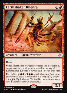 Hour of DevastationEn stockHaste When Earthshaker Khenra enters the battlefield, target creature with power less than or equal to Earthshaker Khenra's power can't block this ...