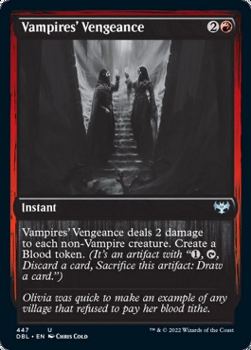 Innistrad: Double FeatureStock basVampires' Vengeance deals 2 damage to each non-Vampire creature. Create a Blood token. (It's an artifact with "{1}, {T}, Discard a card, Sacrifice ...