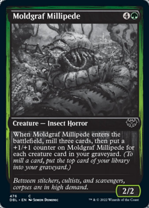 Innistrad: Double FeatureStock basWhen Moldgraf Millipede enters the battlefield, mill three cards, then put a +1/+1 counter on Moldgraf Millipede for each creature card in your gra...