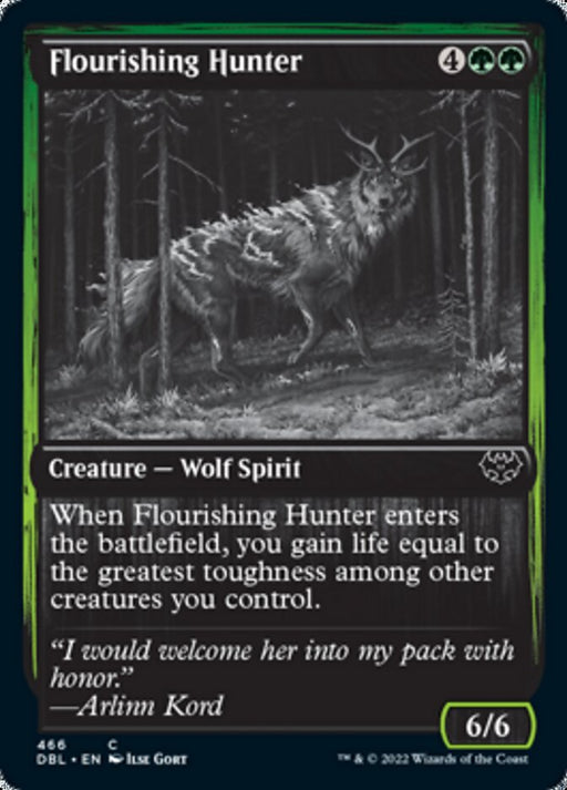 Innistrad: Double FeatureStock basWhen Flourishing Hunter enters the battlefield, you gain life equal to the greatest toughness among other creatures you control.