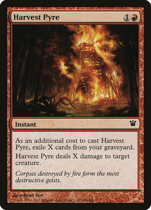 InnistradEn stockAs an additional cost to cast this spell, exile X cards from your graveyard. Harvest Pyre deals X damage to target creature.