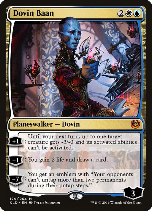 KaladeshStock bas[+1]: Until your next turn, up to one target creature gets -3/-0 and its activated abilities can't be activated. [−1]: You gain 2 life and draw a c...