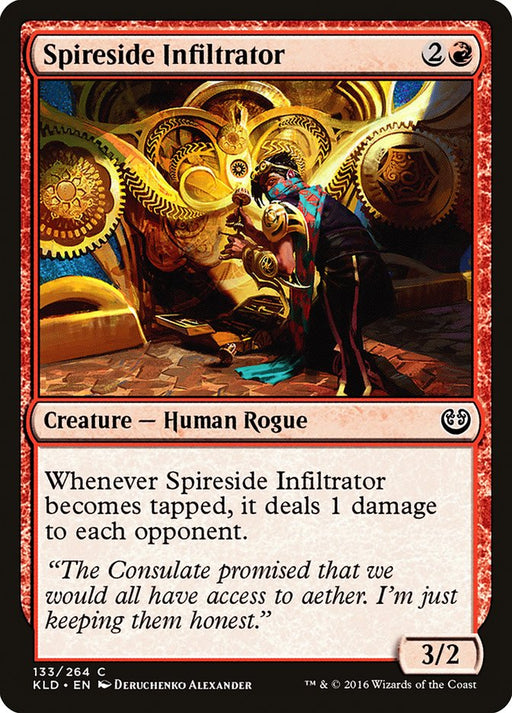 KaladeshEn stockWhenever Spireside Infiltrator becomes tapped, it deals 1 damage to each opponent.