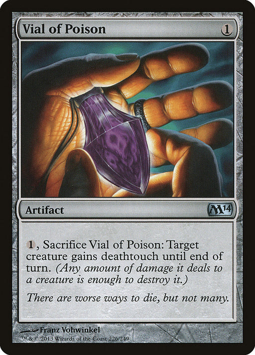 Magic 2014En stock{1}, Sacrifice Vial of Poison: Target creature gains deathtouch until end of turn. (Any amount of damage it deals to a creature is enough to destro...