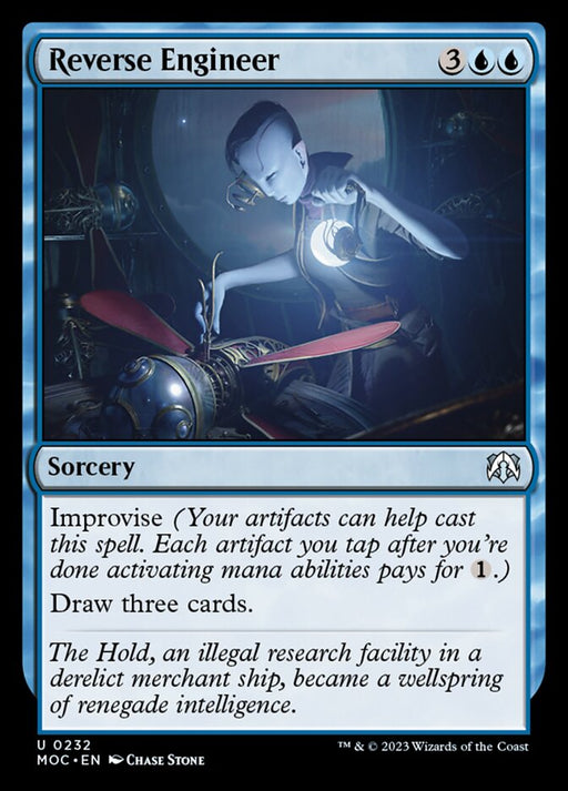 March of the Machine CommanderStock basImprovise (Your artifacts can help cast this spell. Each artifact you tap after you're done activating mana abilities pays for {1}.) Draw three cards.