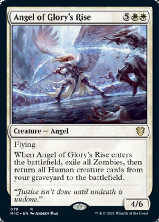 Midnight Hunt CommanderStock basFlying When Angel of Glory's Rise enters the battlefield, exile all Zombies, then return all Human creature cards from your graveyard to the battle...