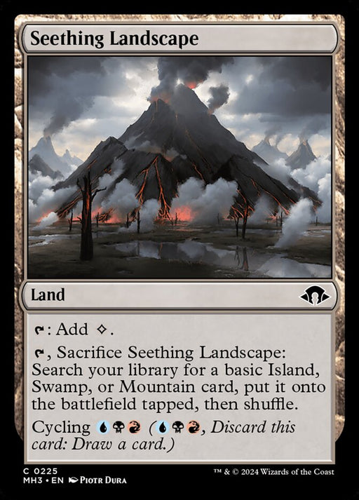 Modern Horizons 3Stock bas{T}: Add {C}. {T}, Sacrifice Seething Landscape: Search your library for a basic Island, Swamp, or Mountain card, put it onto the battlefield tappe...