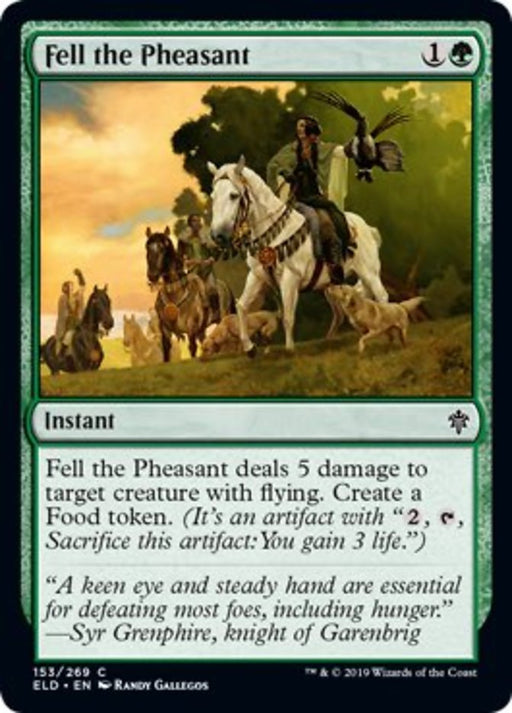Throne of EldraineEn stockFell the Pheasant deals 5 damage to target creature with flying. Create a Food token. (It's an artifact with "{2}, {T}, Sacrifice this artifact: Yo...