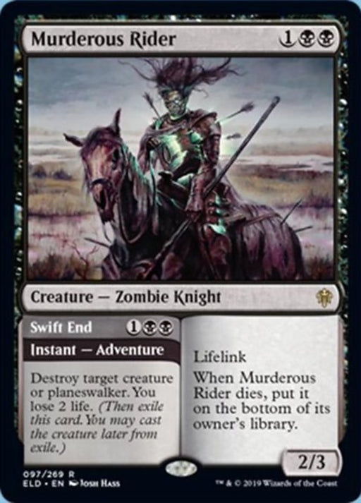 Throne of EldraineStock basLifelink When Murderous Rider dies, put it on the bottom of its owner's library.