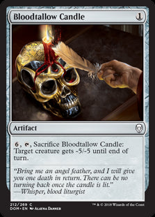 DominariaEn stock{6}, {T}, Sacrifice Bloodtallow Candle: Target creature gets -5/-5 until end of turn.