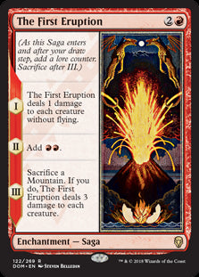 DominariaEn stock(As this Saga enters and after your draw step, add a lore counter. Sacrifice after III.) I — The First Eruption deals 1 damage to each creature wit...