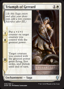 DominariaEn stock(As this Saga enters and after your draw step, add a lore counter. Sacrifice after III.) I, II — Put a +1/+1 counter on target creature you control...