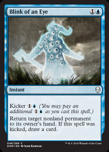 DominariaEn stockKicker {1}{U} (You may pay an additional {1}{U} as you cast this spell.) Return target nonland permanent to its owner's hand. If this spell was kic...