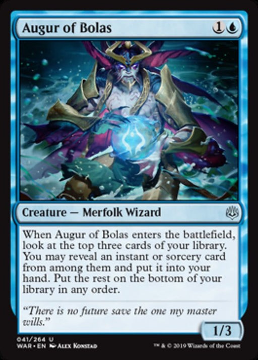 War of the SparkEn stockWhen Augur of Bolas enters the battlefield, look at the top three cards of your library. You may reveal an instant or sorcery card from among them ...