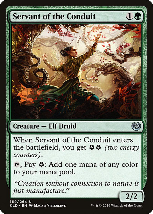 KaladeshEn stockWhen Servant of the Conduit enters the battlefield, you get {E}{E} (two energy counters). {T}, Pay {E}: Add one mana of any color.
