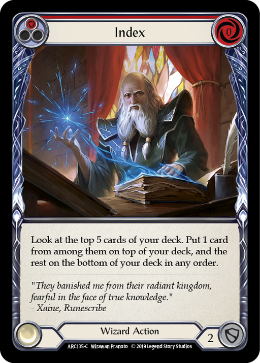 Arcane RisingRupture de stockLook at the top 5 cards of your deck. Put 1 card from among them on top of your deck, and the rest on the bottom of your deck in any order.