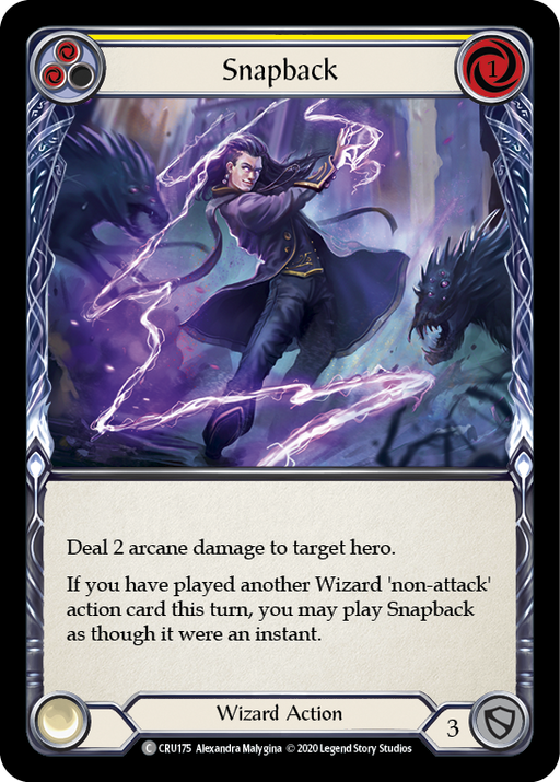 Crucible of WarRupture de stockDeal 2 arcane damage to target hero. If you have played another Wizard 'non-attack' action card this turn, you may play Snapback as though it were...