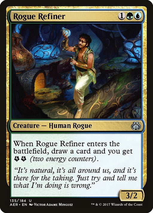 Aether RevoltEn stockWhen Rogue Refiner enters the battlefield, draw a card and you get {E}{E} (two energy counters).