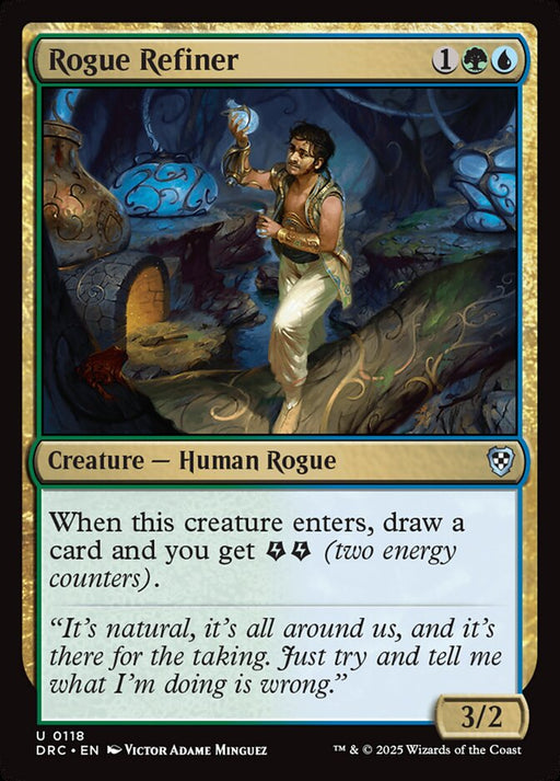 Aetherdrift CommanderRupture de stockWhen Rogue Refiner enters, draw a card and you get {E}{E} (two energy counters).