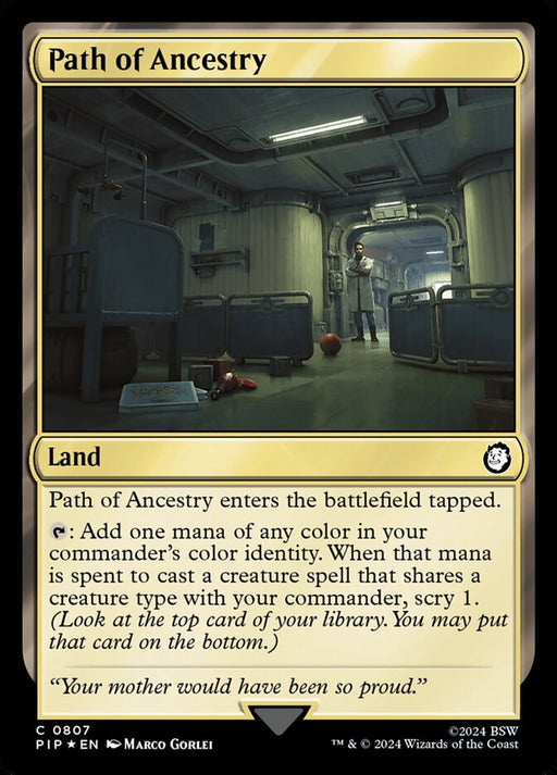 FalloutRupture de stockPath of Ancestry enters the battlefield tapped. {T}: Add one mana of any color in your commander's color identity. When that mana is spent to cast ...