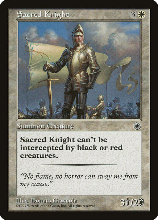 PortalRupture de stockSacred Knight can't be blocked by black and/or red creatures.